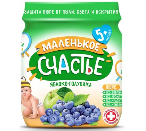 Пюре "Счастье" 90гр. яблоко-голубика 1/12
