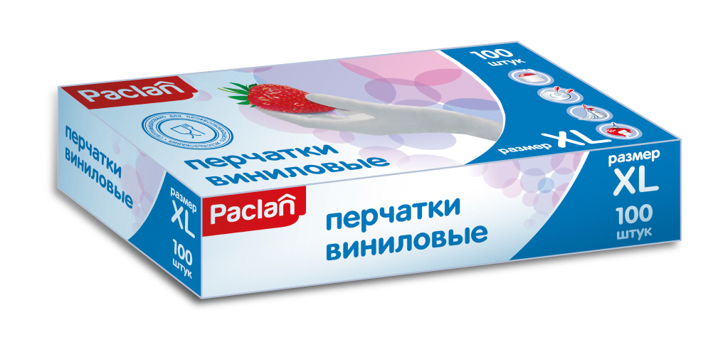 Перчатки Виниловые "Paclan" размер L 100шт в уп.