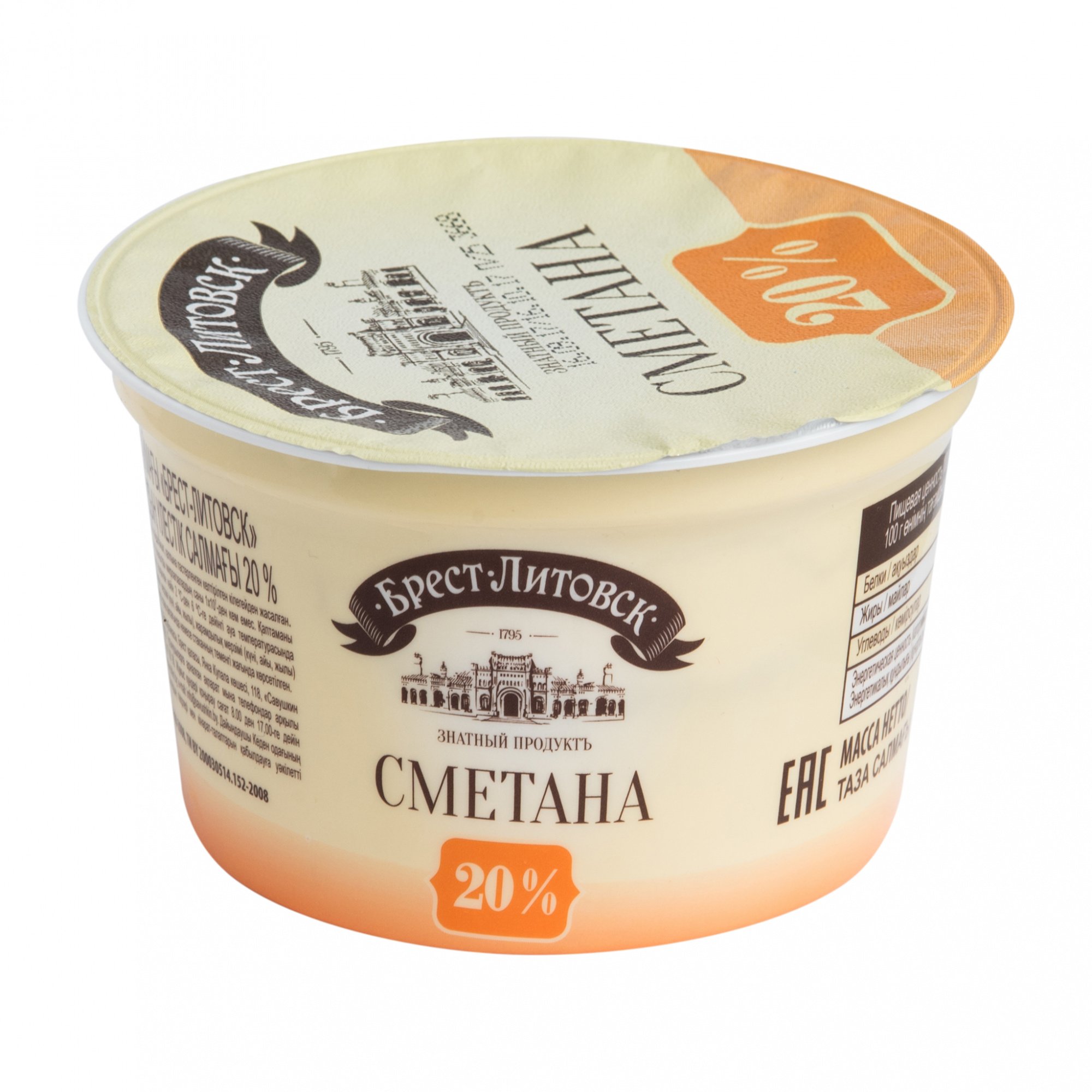 Сметана Брест-Литовск 180гр 20%