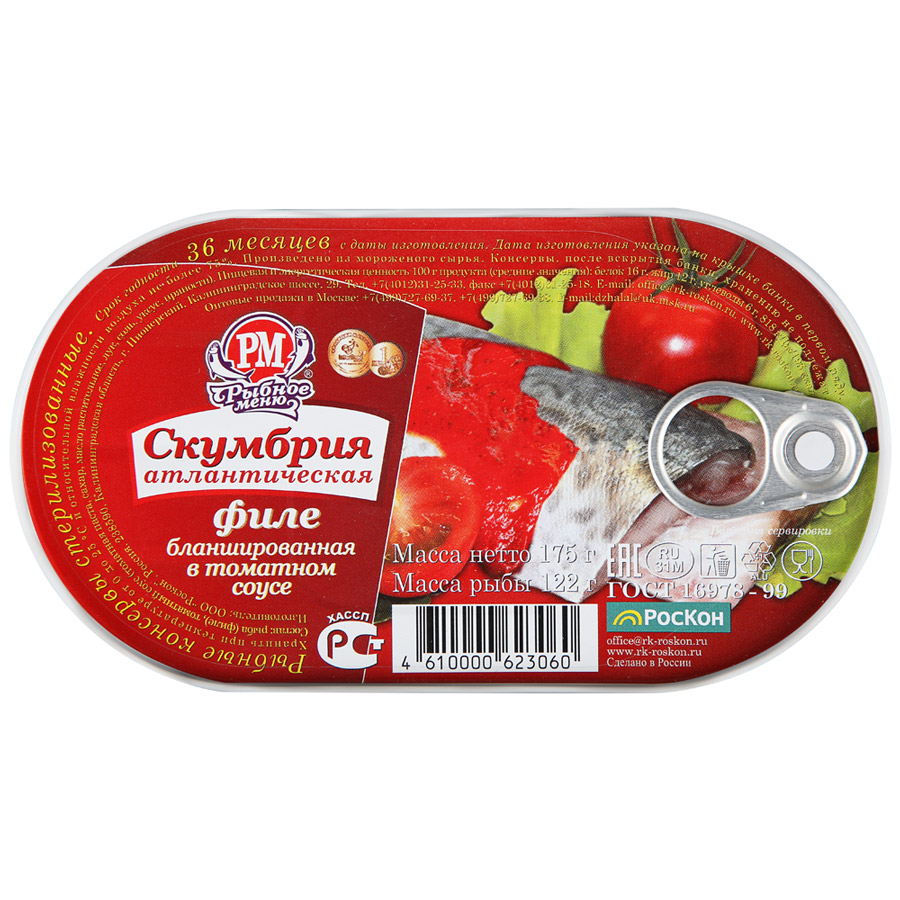 Скумбрия филе в томатном соусе РМ 175г 1/36