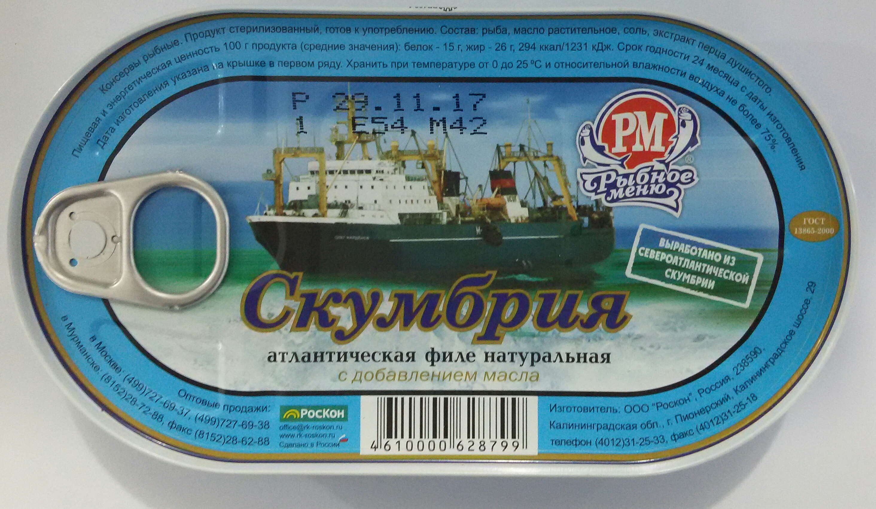 Скумбрия РЫБНОЕ МЕНЮ 175гр.